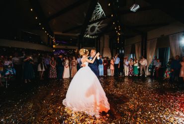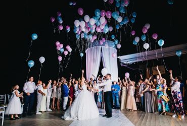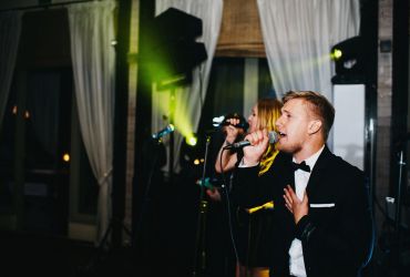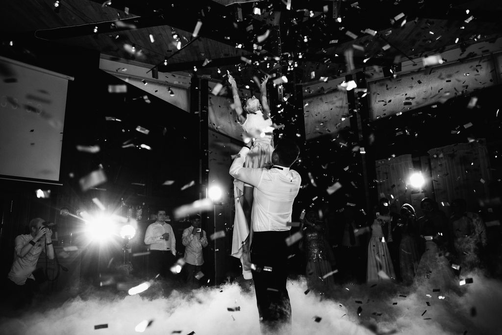 Молодожены не давали гостям скучать и подготовили массу сюрпризов: оригинальный постановочный танец молодоженов со спецэффектами. Невеста, в живом акустическом сопровождении кавер-группы, исполнила песню в подарок жениху.