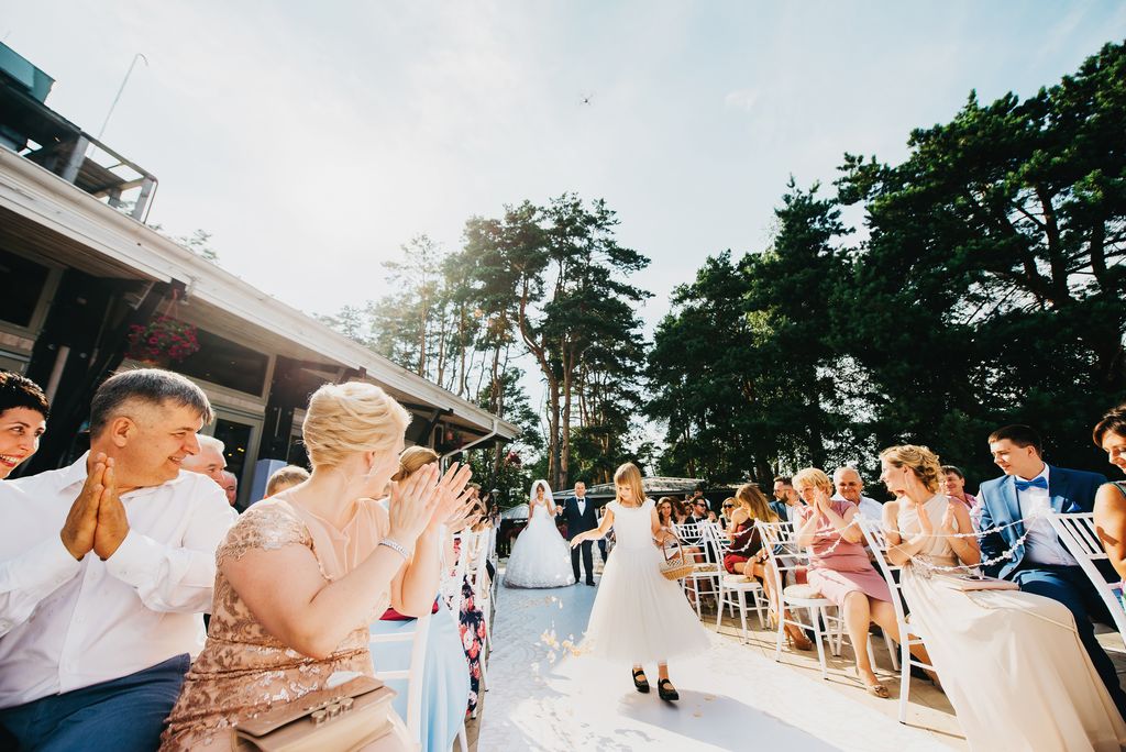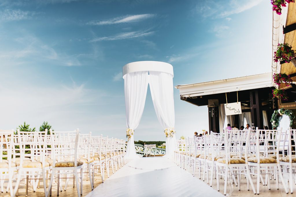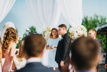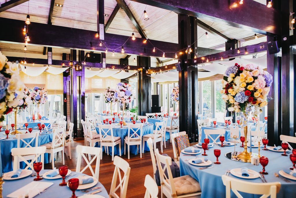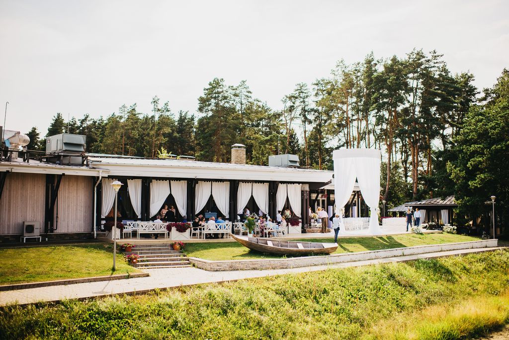 Местом проведения свадьбы был прекрасный загородный ресторан с открытой верандой на берегу озера. Он сразу понравился молодоженам, кроме того, он хорошо подходил по территориальной расположенности. А мы уже окончательно убедили Дмитрия и Дарью, что это верный выбор.
