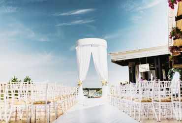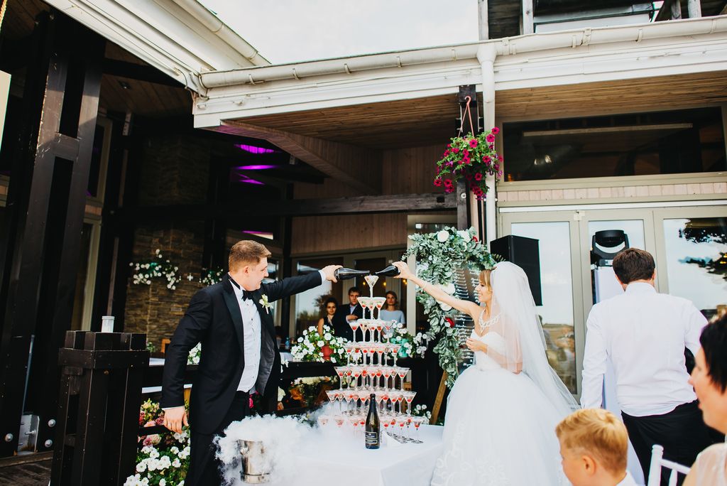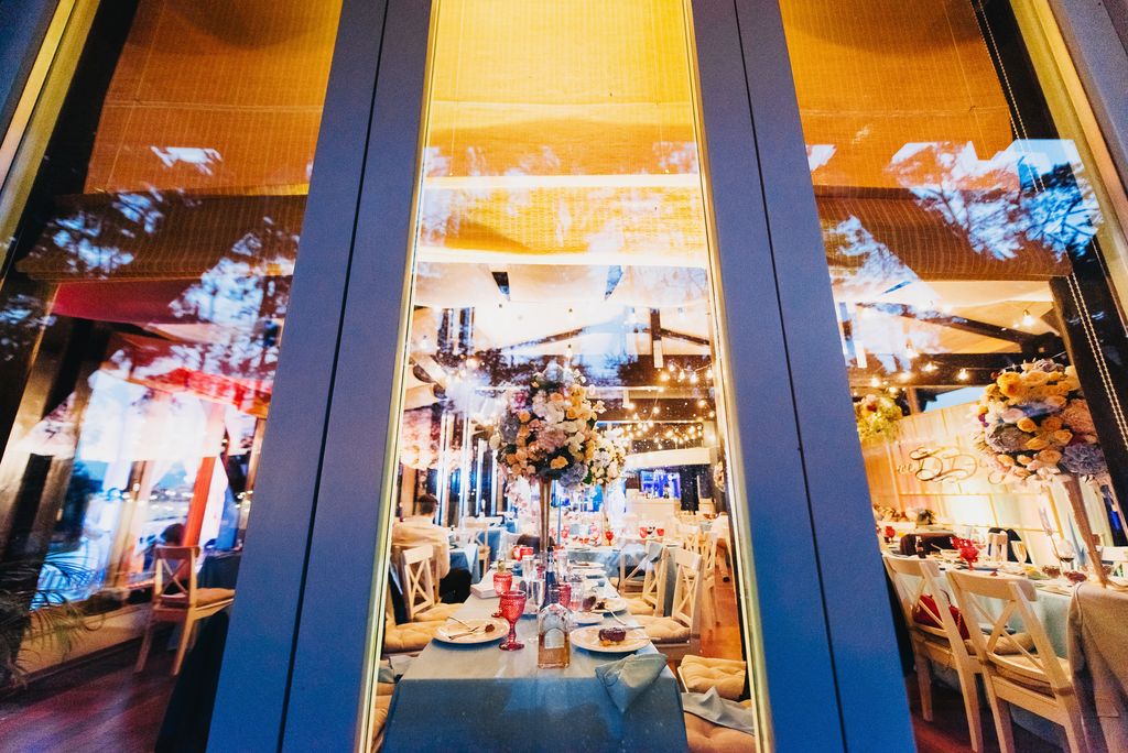 Местом проведения свадьбы был прекрасный загородный ресторан с открытой верандой на берегу озера. Он сразу понравился молодоженам, кроме того, он хорошо подходил по территориальной расположенности. А мы уже окончательно убедили Дмитрия и Дарью, что это верный выбор.